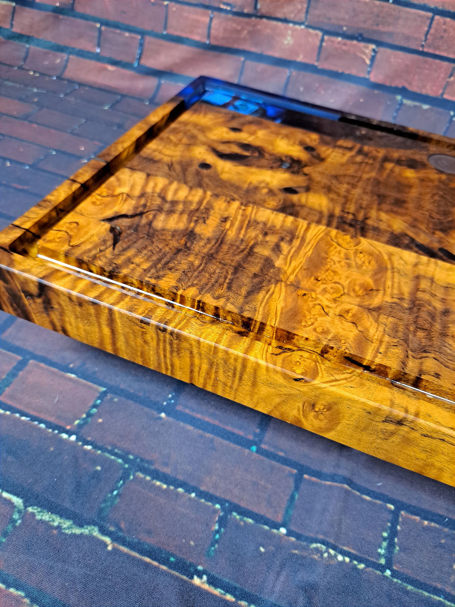 Espécie: Burl Imbuia combinada com resina epóxi e garrafa de Jagermeister.