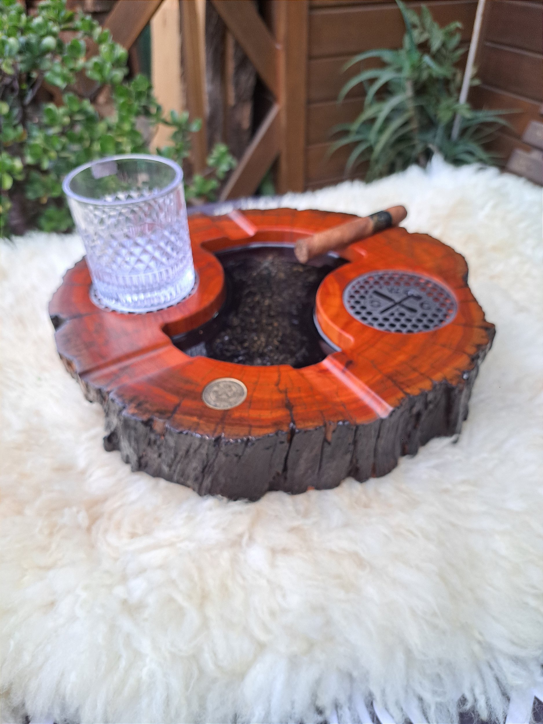 Peça produzida artesanalmente em madeira combinada com resina epóxi.