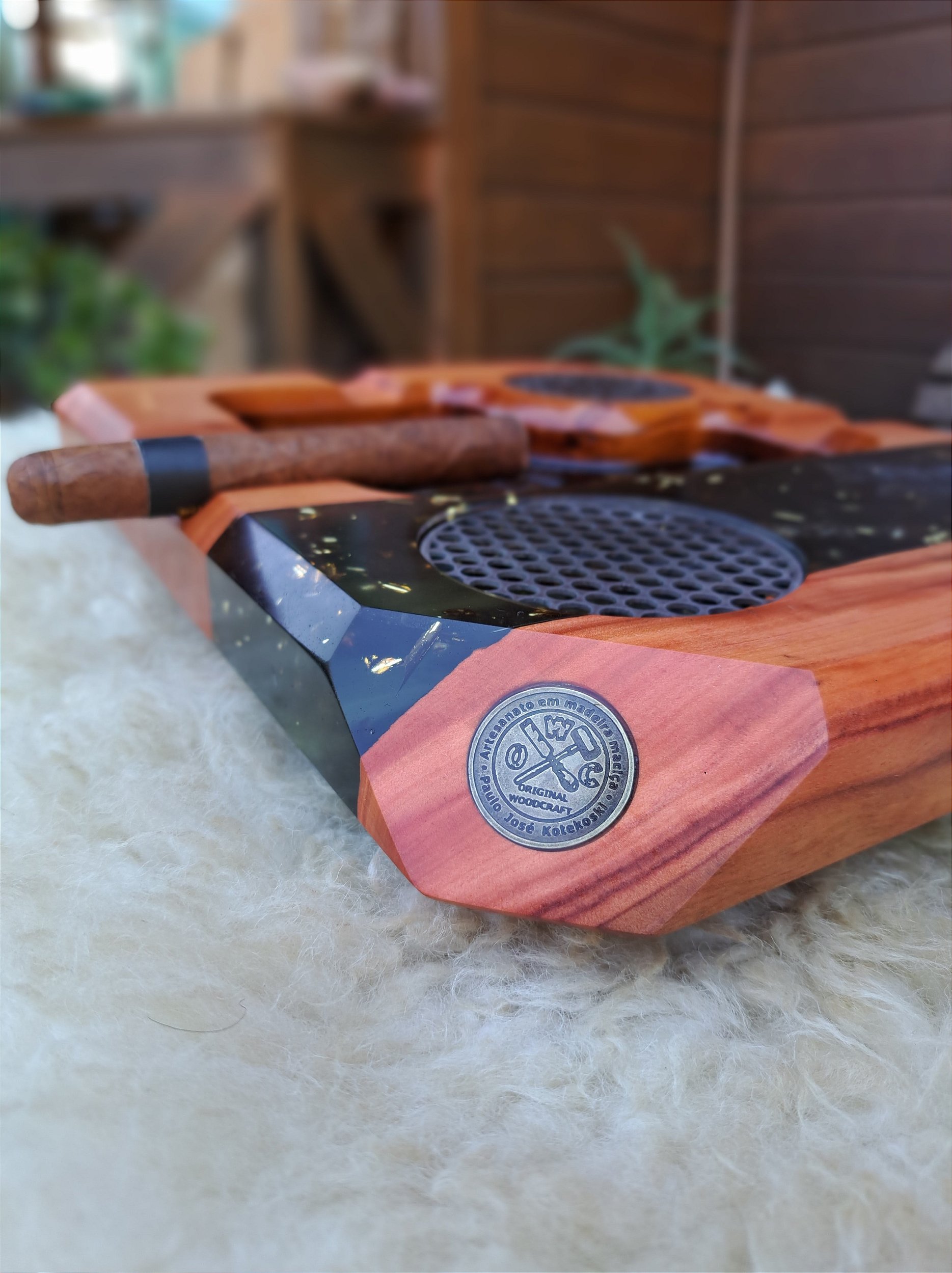 Charuteiro Original Plus. Peça combinada entre resina epóxi e madeira (PEROBA ROSA).
